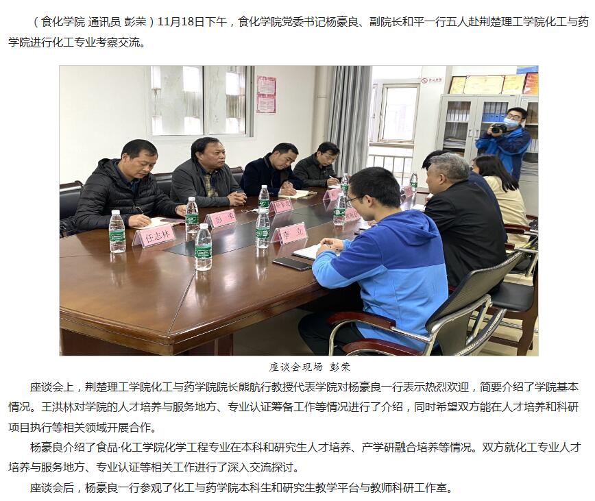学院赴荆楚理工学院化工与药学院考察交流