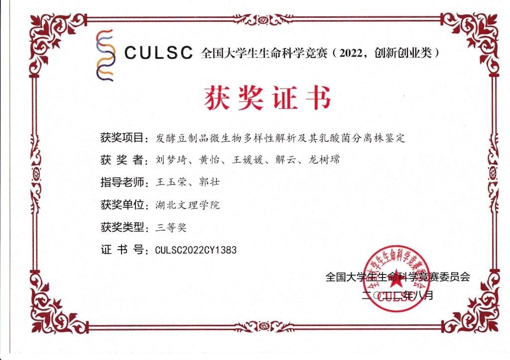 2022年全国大学生生命科学竞赛(创新创业类)已落下帷幕,我院学子在指导教师的精心辅导下奋力拼搏,取得优秀成绩,获得国家级奖励12项,其中一等奖1项,二等奖4项,三等奖7项,祝贺他们!!!