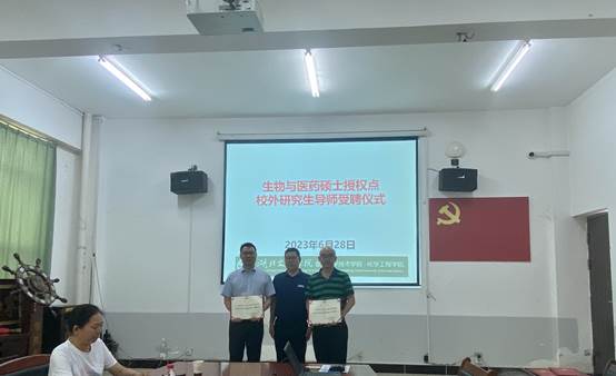 来自湖北晶恒检测有限责任公司李勇学总工程师、湖北荆洪生物科技股份有限公司杨辉总工程师作为校外导师代表接受了聘书。目前,生物与医药硕士授权点硕导已聘任两期共有41位,其中校内导师28位,校外导师13位。校外导师主要来自安琪酵母、古襄阳酒业、金达成、湖北地质八大队、湖北晶恒检测、湖北荆洪生物科技、湖北富邦新材料等学院合作单位。