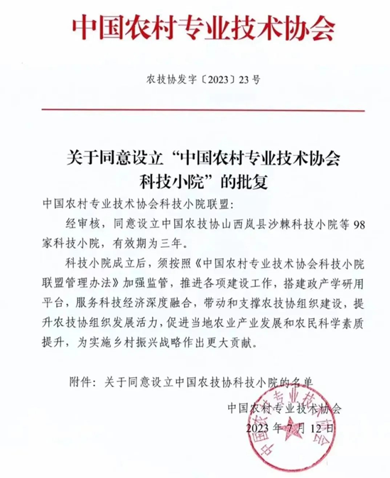 据悉,科技小院是高校和科研院所等研究生培养单位集人才培养、科技创新和社会服务于一体的新型人才培养和科技服务“三农”的重要创新模式。中国农技协科技小院是以研究生与科技人员驻村工作,零距离、零门槛、零时差和零费用服务于农户及生产组织为特色,集农业科技创新、示范推广和人才培养于一体,致力于引导农民高效生产,是新时代农业科研、科技服务与人才培养有机融合,助推农村产业发展和乡村振兴的有效模式。