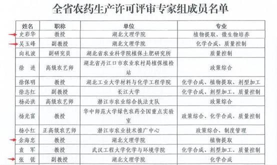 我院4位教师入选湖北省农药生产许可评审专家组