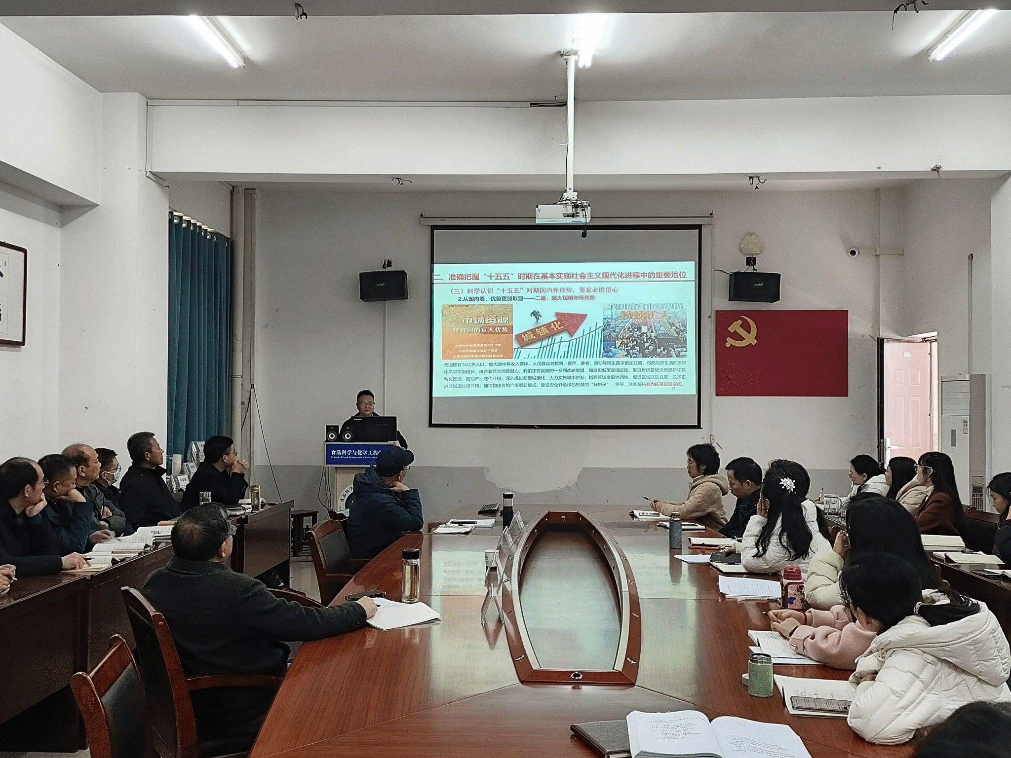(通讯员 窦素琴)为深入学习宣传贯彻党的二十届四中全会精神,推动全会精神在学校基层落地生根、入脑入心,12月4日下午,学校党委副书记王瑶珺同志深入伟德victor1946,为学院全体教职员工作了题为“深入学习贯彻党的二十届四中全会精神”的专题宣讲报告。报告会在食化学院三楼会议室举行,食化学院党政领导班子成员、全体教职工聆听了报告。报告会由食化学院党委书记储杰同志主持。