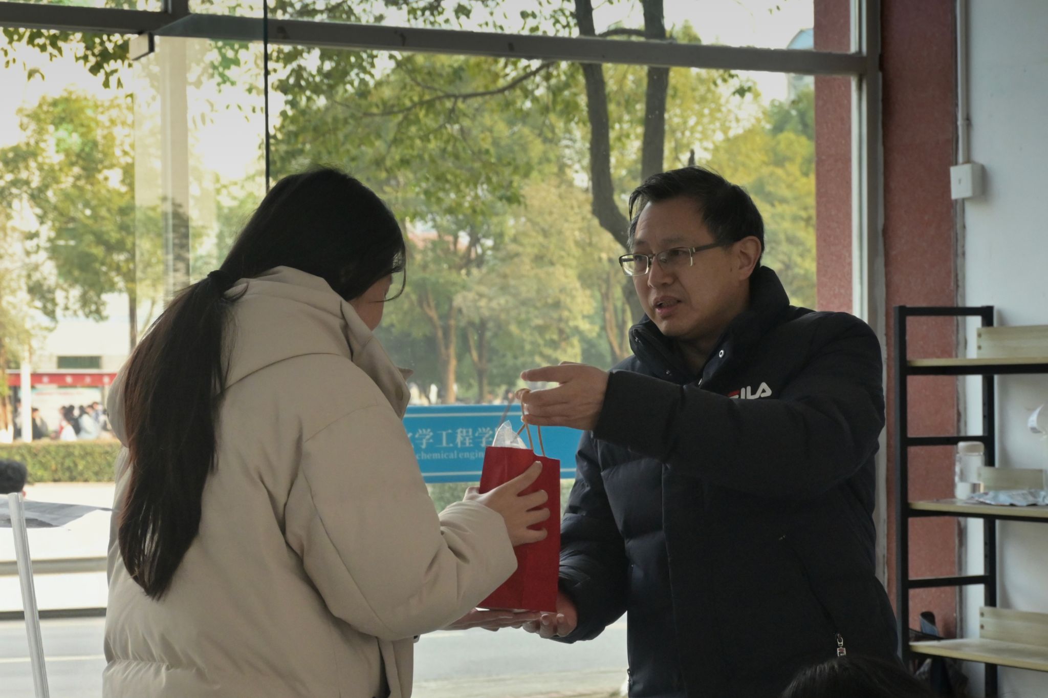 12月16日下午,学院精心组织开展了一场简约而不失温情的“加油包”发放仪式。学院领导亲自将饱含关怀与祝福的“加油包”逐一递交给考研学子,并与他们进行了亲切的沟通交流,详细询问复习进展情况,着重叮嘱他们要合理安排时间、劳逸结合,扎实做好考前各项准备工作。同学们收到这份意外的暖心关怀,内心深受触动、倍感振奋,他们纷纷表态:“学院考虑得十分周全,这份礼物既实用又贴心,让我们深刻感受到并非独自奋战,背后有全院师生的坚强支持,这使我们冲刺考研的动力更加充沛!”