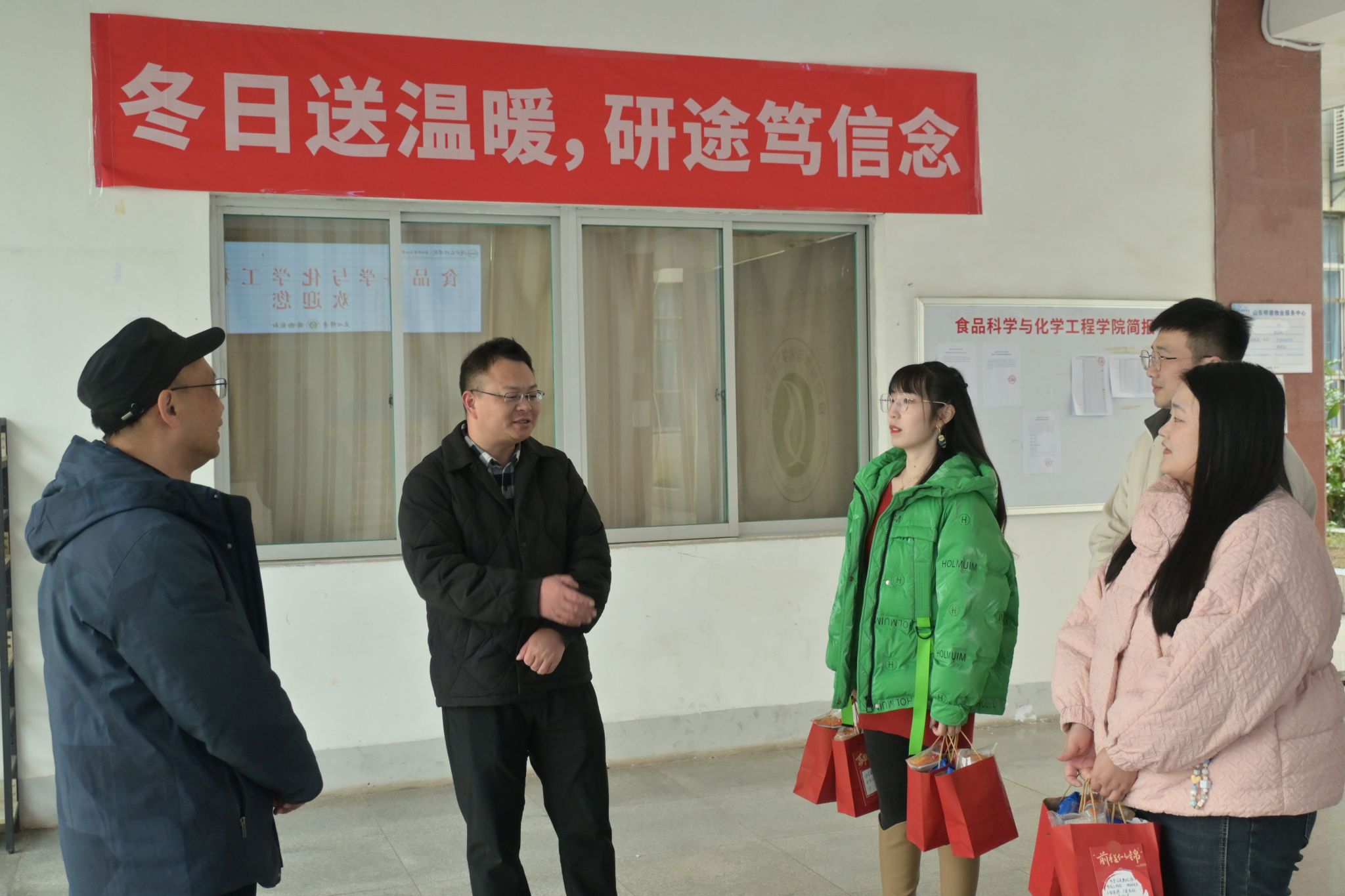 慰问现场氛围温馨融洽,校领导亲手将“考研加油包”递到学子手中。考研祝福卡片上的声声鼓励以及加油包中的贴心物品,让学子们在冬日备考之路上感受到了满满的温情。