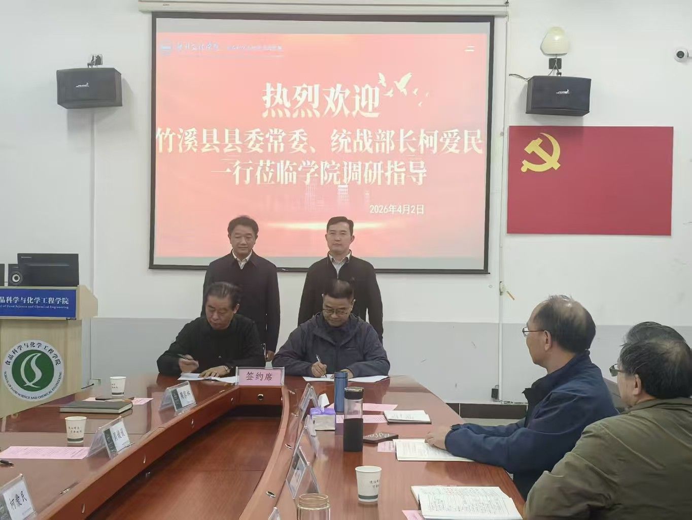竹溪县县委常委、统战部部长柯爱民详细介绍了竹溪县地方资源禀赋、产业基础以及未来发展定位,希望学院结合地方产业特点,选派专家进驻竹溪企业,有针对性地开展应用研究和技术攻关,帮助解决行业发展的共性难题。与会企业家代表湖北华兴新材料科技有限公司董事长周家林,介绍了公司产品特色以及在产品研发中的技术需求,与现场博士团队项目精准对接,并顺利签订产教融合合作框架协议,双方互动氛围浓厚。