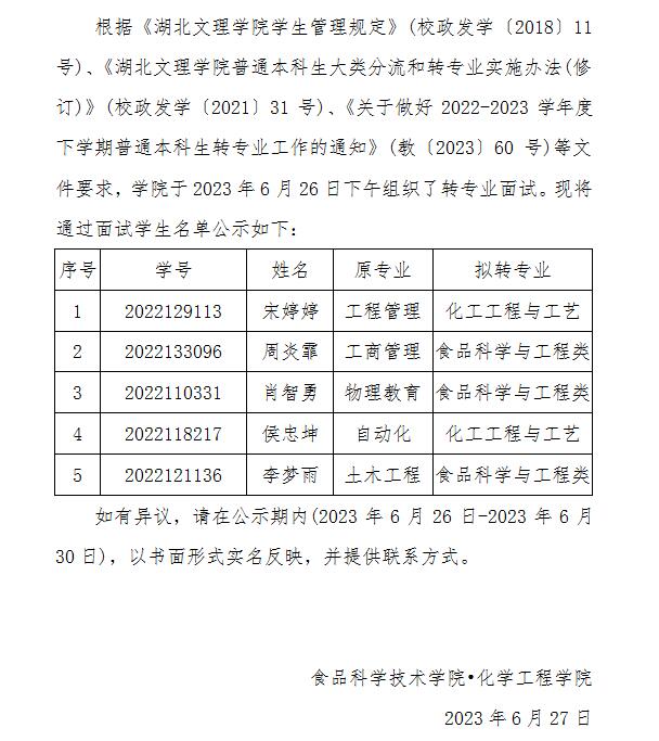 【研究生招生】2023年湖北文理学院食品科学技术•化学工程学院暑期夏令营线上报名通知