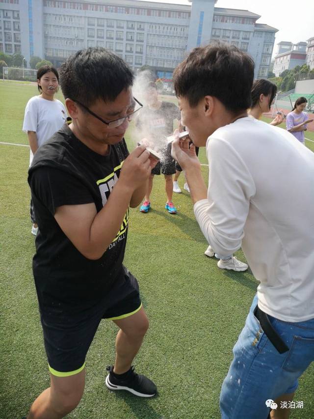 面粉接力,一次没忍住的呼吸让队友都变成了大花脸。