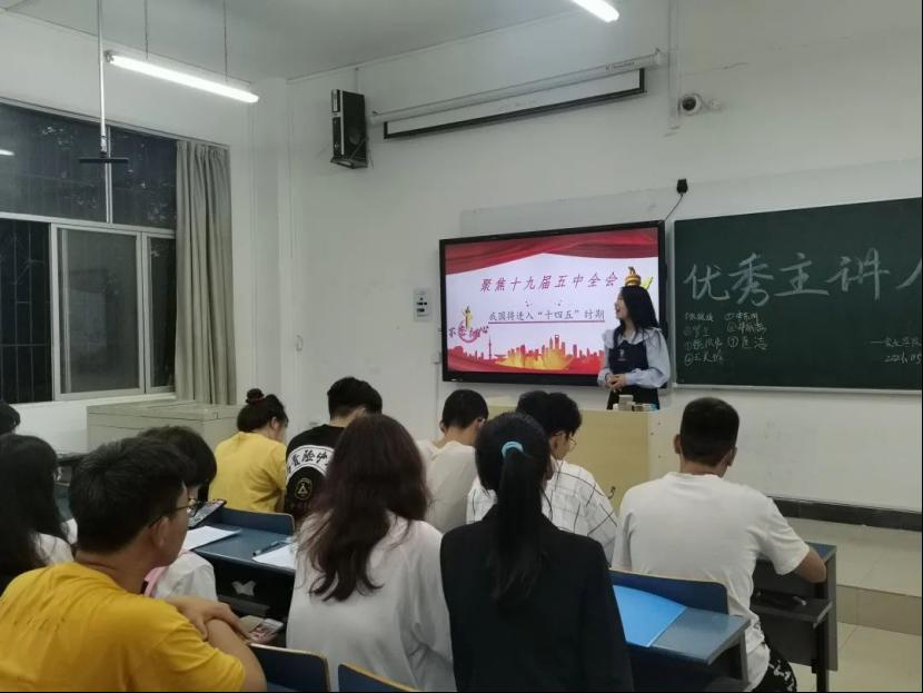 活动伊始,主持人陈玉欣向大家介绍了本次活动的主题与意义,随后演讲者们依次上台演讲。选手们分别采取PPT演示、脱稿演讲等多种形式,表达了自己对于中共中央十九届五中全会精神以及五四精神等思想精神的深刻理解与感想。演讲过程中,选手们饱含深情,他们怀着深沉的爱国之心,以慷慨激昂的语句,叙述自己的思想感悟,深深地感染着同学们。最后演讲比赛在同学们热烈的掌声中圆满结束。