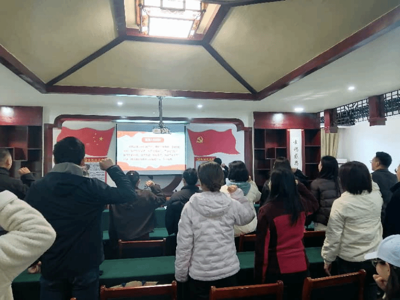 上午10时许,主题党日活动在庄严的国歌声中拉开帷幕。全体党员肃立齐唱国歌,铿锵的旋律激荡着爱国情怀。在领誓人蔡爽同志的带领下,全体党员面对鲜红的党旗,高举右拳,重温入党誓词。“我志愿加入中国共产党……”字字千钧,句句铿锵,表达了党员们对党的无限忠诚和为教育事业奋斗终身的坚定决心。