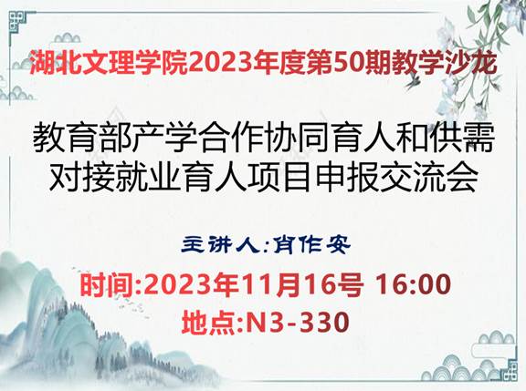 (通讯员 屈定武)2023年11月16日下午,学院在N3-330举办学校2023年度第五十期教学沙龙---“教育部产学合作协同育人和供需对接就业育人项目申报经验分享”,主讲人为学院教学委员会主任肖作安副教授,学院骨干教师参加了分享会。