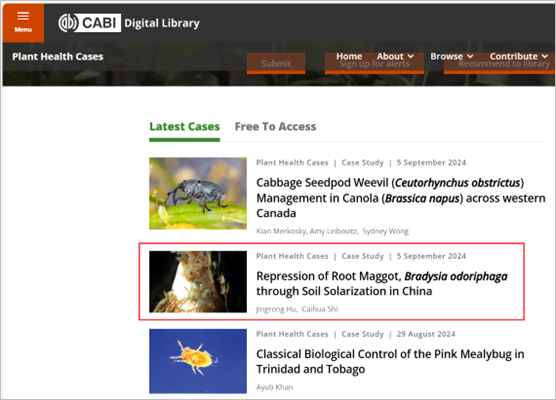 据了解,《Plant Health Cases》是CABI数据库中专注于植物健康领域的实践案例集,旨在通过真实、深入的案例,帮助学生和从业者更好地理解和应对植物健康问题,培养其分析和解决问题的能力。该系列案例由国际知名学者和相关从业者撰写,经过严格的同行评议,确保内容的质量和权威性。由于其对案例的严格要求和高标准筛选,《Plant Health Cases》每年刊登的案例数量极为有限,2023年仅收录了21篇;而截至目前为止,2024年刊登的案例也仅有14篇。