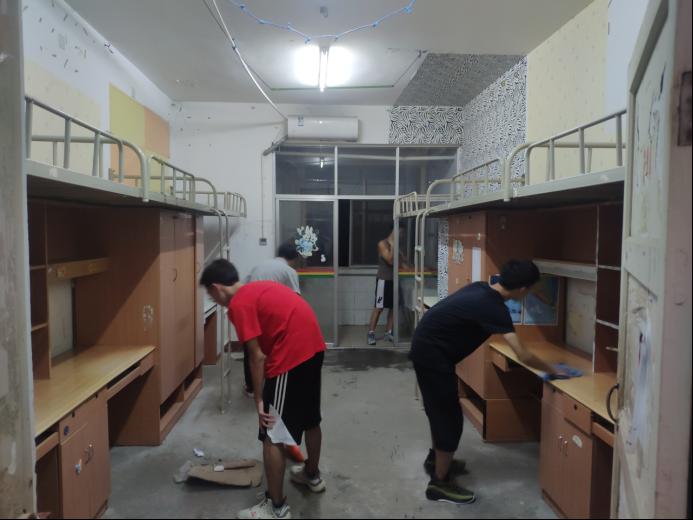 学院党支部、团委和学生会全体学生干部拿着清洁工具早早在11栋楼下集合,在分配好宿舍后迅速分散到寝室所在楼栋。本次打扫卫生的寝室是新生所要居住的男寝11栋和女寝22栋,既对宿舍卫生进行清洁,又同时对相关宿舍公共物品损坏进行统计统计并及时上报维修,给新生们营造一个整洁的住宿环境。