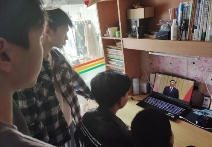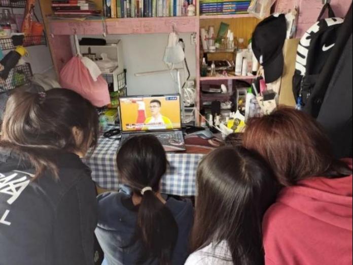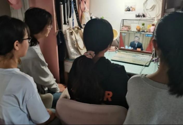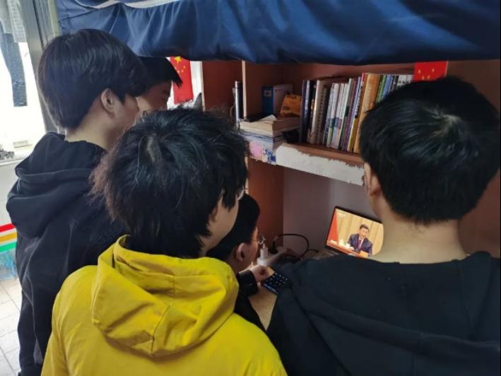 学生们在寝室观看大会,展开热烈讨论。
