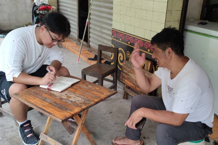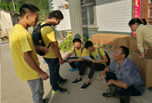 村民给志愿者介绍收入情况