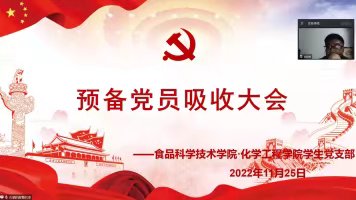(食品·化工学院 通讯员 毕楷坚)为吸收新血液,焕发新活力,食品·化工学院于11月25日晚上6:30召开预备党员吸收大会,学院党委副书记刘向东以及全体学生党员、预备党员参加会议。