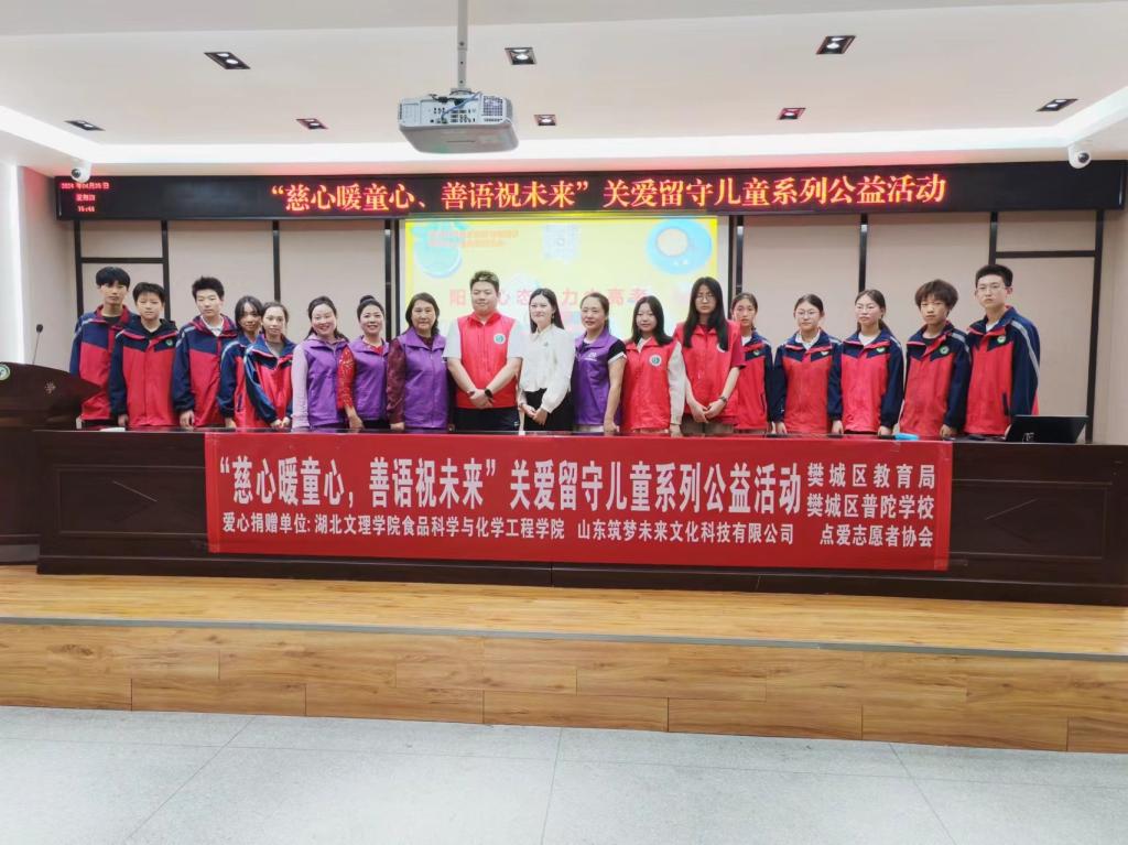 4月25日,湖北文理学院食化学院“食化实说”志愿服务团队、点爱志愿者协会志愿者在襄阳市樊城区普陀学校举办“慈心暖童心,善语祝未来”爱心图书捐赠活动。此次捐赠的物资包括辅导书籍和文具套装等等,共计书籍500余册、100余个文具套装,这些书籍内容丰富,知识覆盖全面,能够满足孩子们学习和求知的欲望,激发他们对学习的兴趣和热爱。