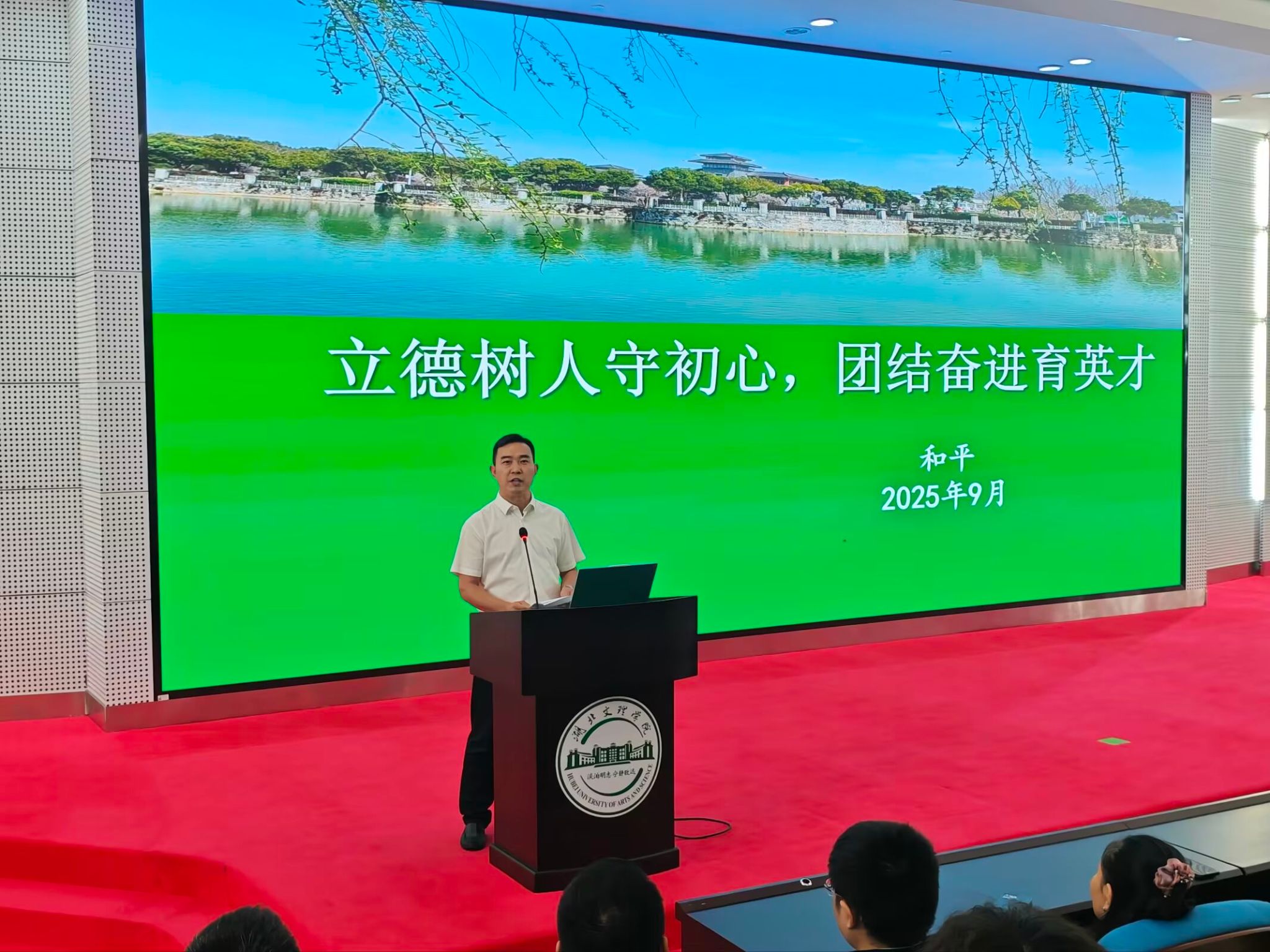 随后,和平院长发表热情洋溢的致辞。他代表学院向全体2025级新生的到来表示最热烈的欢迎,并简要介绍了学院的整体发展概况、先进的育人理念以及雄厚的办学实力。和平院长深情寄语新生,希望他们能够珍惜大学时光,尽快适应新环境,树立远大理想,勤奋学习,勇于探索,在未来的求学道路上不断追求卓越,成长为栋梁之材。