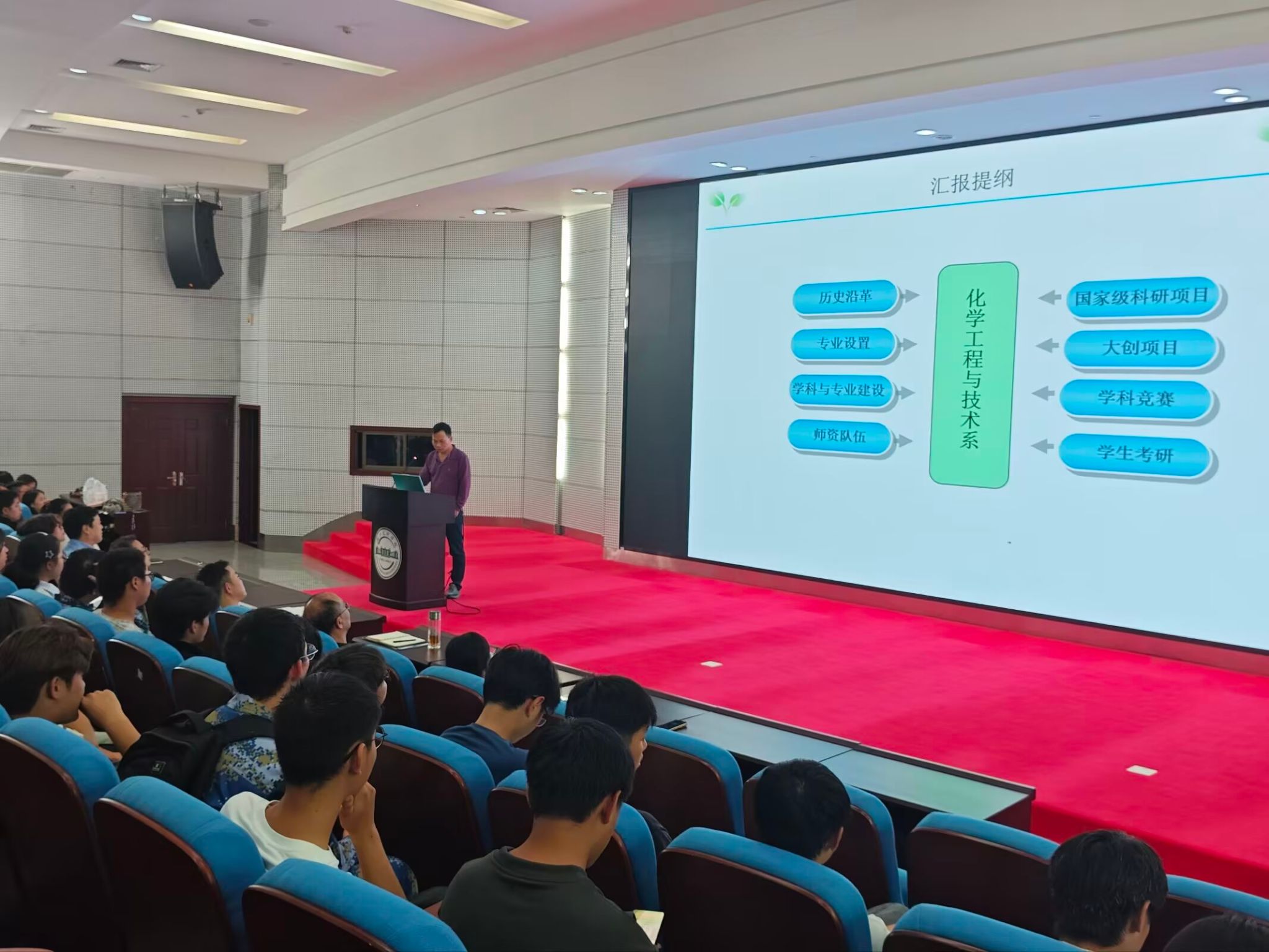 接下来的专业特色与优势介绍环节是本次典礼的重点。食品科学与工程系和化学工程与技术系老师先后登台,利用精美的PPT,向新生们系统阐述了各自专业的培养目标、强大的师资队伍、科学的课程体系、鲜明的行业优势以及广阔的发展前景。他们还生动分享了往届优秀学生的成才案例,以榜样的力量激发新生的学习热情,增强了同学们对所学专业的认同感与归属感。