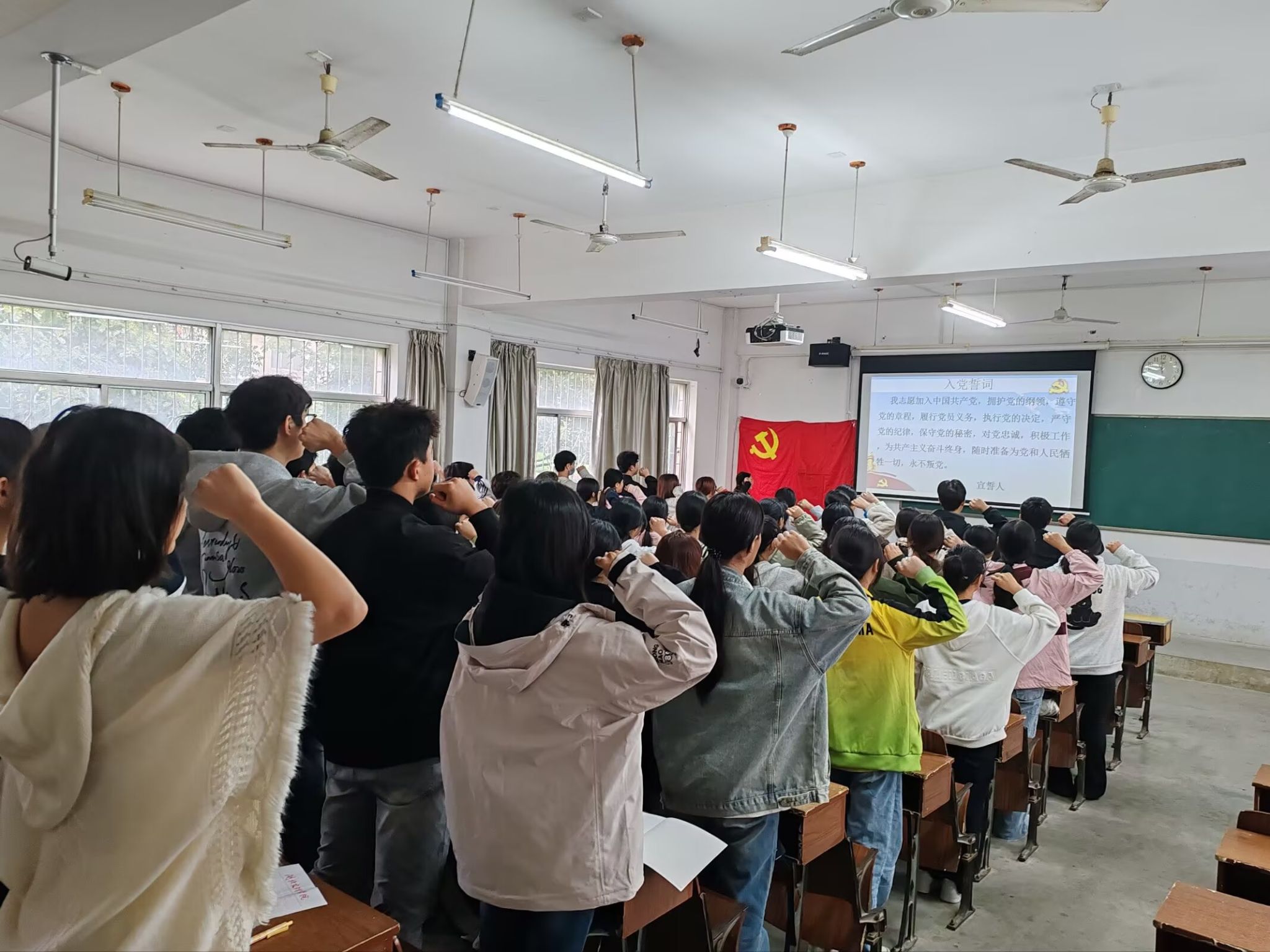 大会伊始,王飞同志主持会议,引领全体支部成员奏唱国歌。全体与会人员着装整齐、肃穆站立,齐声高唱国歌,为本次学习大会营造了庄严而坚定的氛围。紧接着,在朱程程同志的引领下,全体支部成员面对鲜艳的党旗,庄重站立,举起右拳,重温入党誓词。朱程程同志还对《中共湖北省委十二届十次全体会议举行 牢记嘱托感恩奋进 为加快建成中部地区崛起重要战略支点接续奋斗 王忠林讲话 李殿勋诸葛宇杰出席》和《中共襄阳市委十四届十二次全体会议举行 担当作为 奋勇争先 务本务实 真抓实干 奋力打造中西部发展的区域性中心城市》两个文件进行了深入解读。大会强调,要结合襄阳全会弘扬“铁打精神”的号召,激励大家在学业科研中攻坚克难、勇攀学术高峰,在志愿服务中积极作为、服务人民。